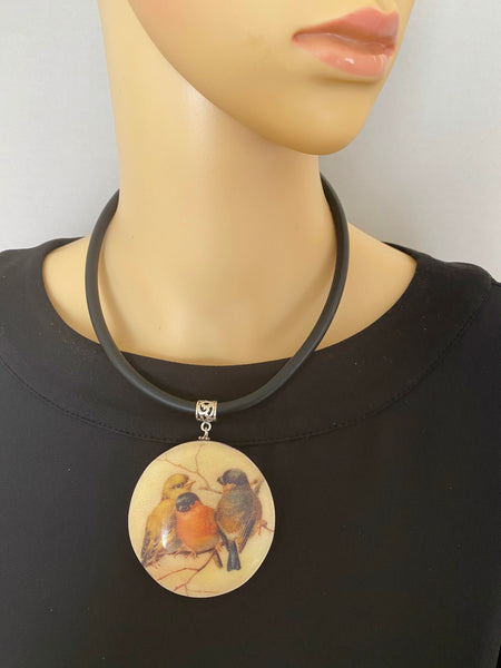This necklace features my exclusive handcrafted art bead pendant. The 2.5" pendant is suspended from a bold 16" cord, complemented by an elegant sterling silver bail, lobster clasp and 3" extender chain. It is simple, yet elegant, and destined to be a conversation piece.